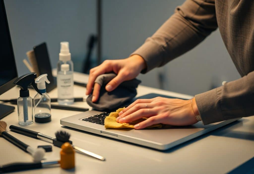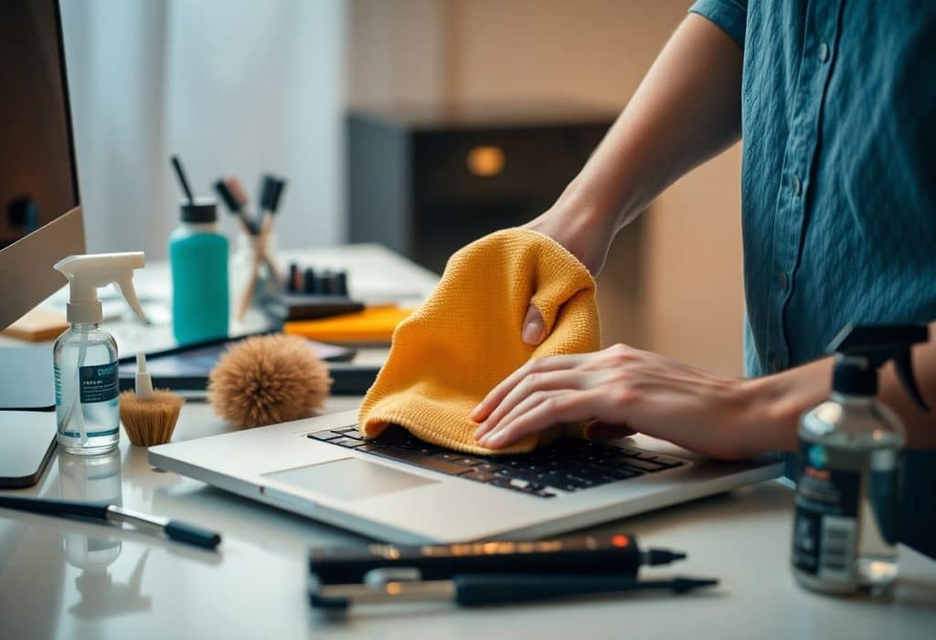 Un nettoyage efficace ne se limite pas aux logiciels, il faut également investir dans certains accessoires matériels. Un kit de nettoyage comprenant un chiffon en microfibre, un pinceau antistatique et un spray nettoyant adapté peut faire des merveilles pour éliminer la poussière et les salissures sur l’écran et le boîtier de votre ordinateur. Ces outils permettent de préserver l’aspect esthétique de votre appareil tout en garantissant son bon fonctionnement à long terme.